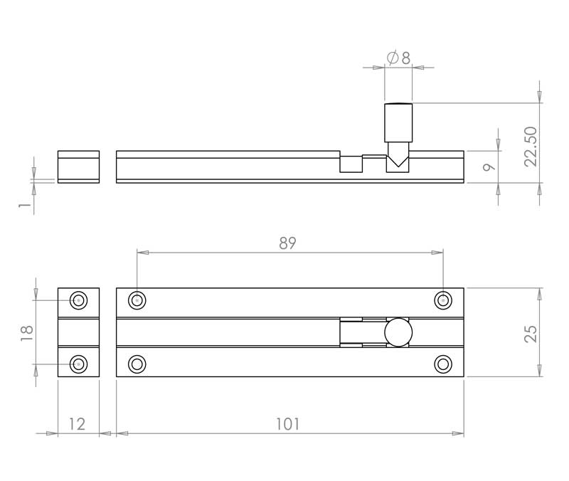 Aluminium straight barrel bolts are a type of straight barrel bolt made from aluminium, a lightweight and corrosion-resistant metal. Like other straight barrel bolts, they consist of a cylindrical metal rod (the barrel) that slides horizontally within a housing or brackets mounted on one surface. When extended, the bolt engages with a hole, slot, or strike plate on the adjacent surface to lock the two surfaces together.